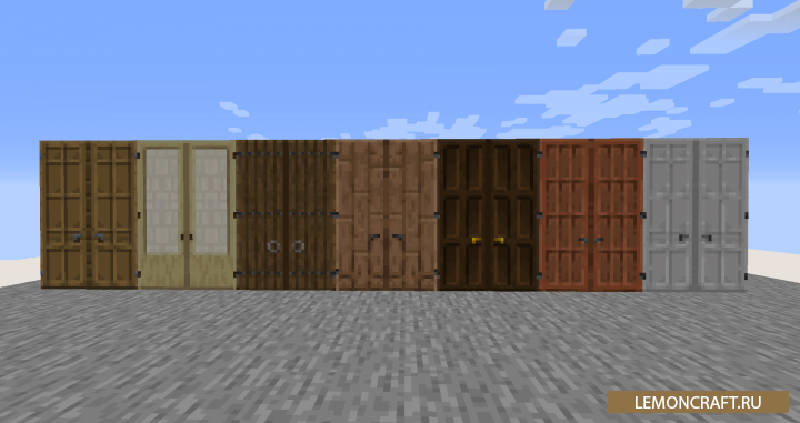 Мод на высокие двери Dramatic Doors добавляет в игру новые двери, которые будут отличаться от стандартных своей высотой (3 блока вместо 2). Отличный вариант для больших строений, типа замков, офисных зданий и т.п. Высота данных дверей позволит входить в них эндермену или проезжать через них сидя на лошади.